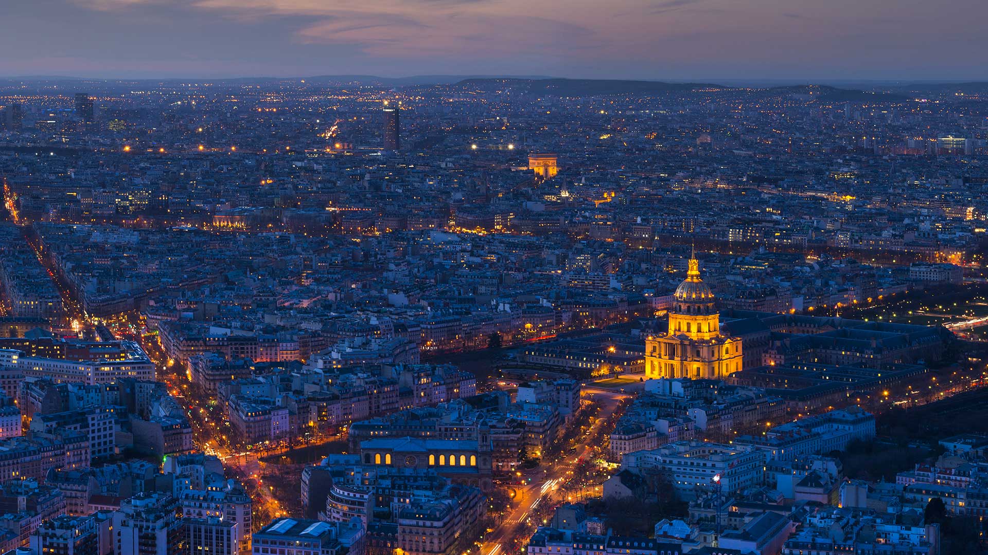 Aerial view of Penn Station and the 纽约市 skyline at night in the 1950s (© R. Gates -Staff/盖蒂图片社)